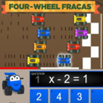 O FOUR WHEEL Fracas é um jogo de matemática on-line da Arcademics, multijogador, para aprender e praticar álgebra com equações de primeiro grau, uma incógnita e adição e subtração. Cada corrida é disputada entre 12 jogadores, e você pode criar um jogo e jogar com seus colegas de equipe. Jogue essa corrida de equações matemáticas de primeiro grau e resolva o valor da incógnita em igualdades de primeiro grau, expressões algébricas de adição e subtração com uma indeterminação. Determine o número inteiro desconhecido em uma equação de primeiro grau neste jogo de matemática desenvolvido pela Arcademics: "Four Wheel Fracas".